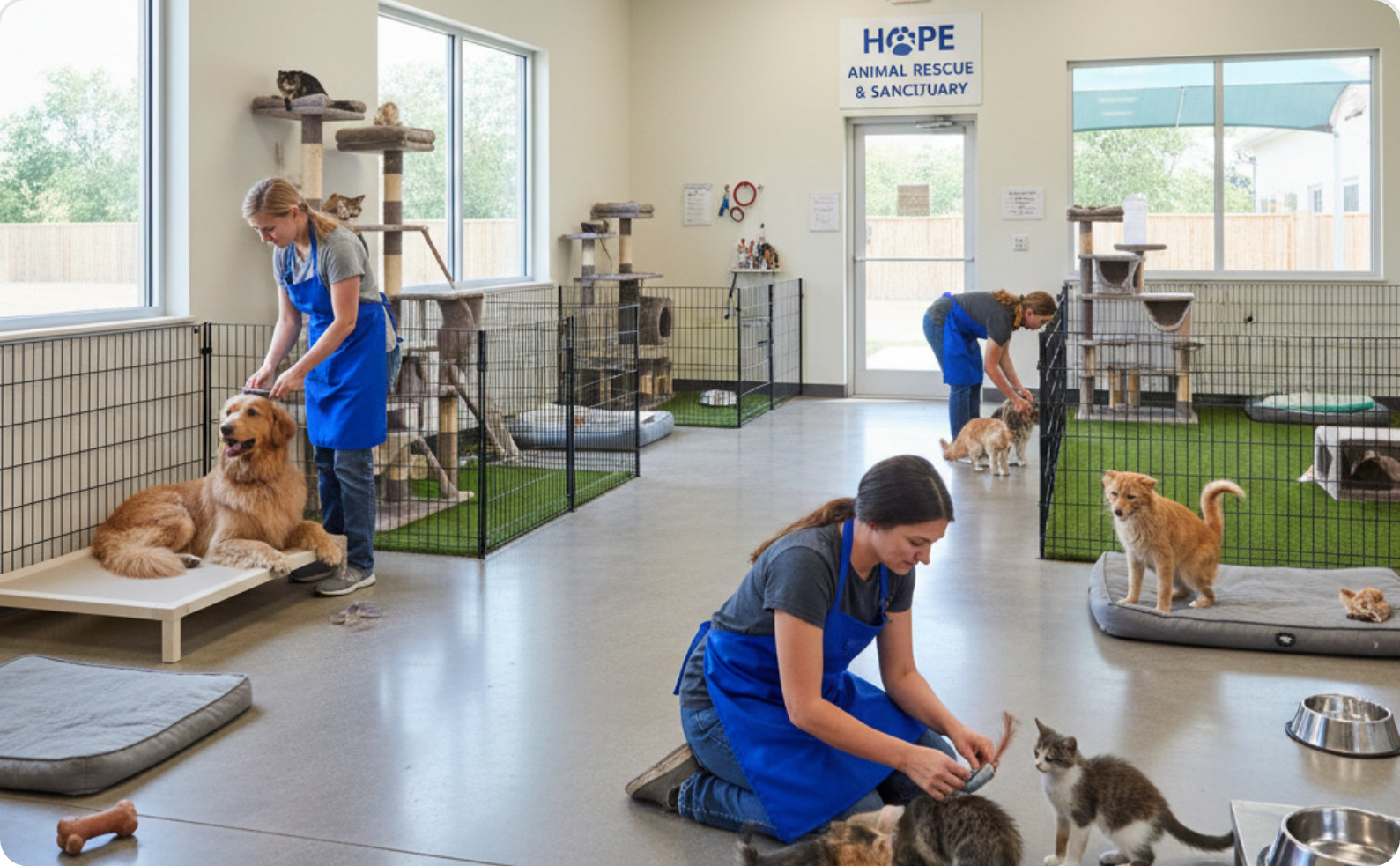Organizaciones dedicadas al rescate y rehabilitación de animales con el objetivo de encontrarles un hogar permanente.
